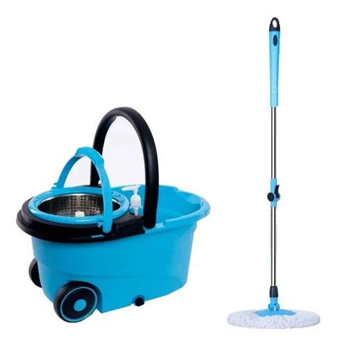 Mopa de microfibra de uso sencillo. Sistema ultra-eficiente de deshidratación. No derrama ni daña los pisos. Puerto de drenaje de ultimo modelo. Mopa de presión centrífuga hacia ambos lados, con rotación de 360°